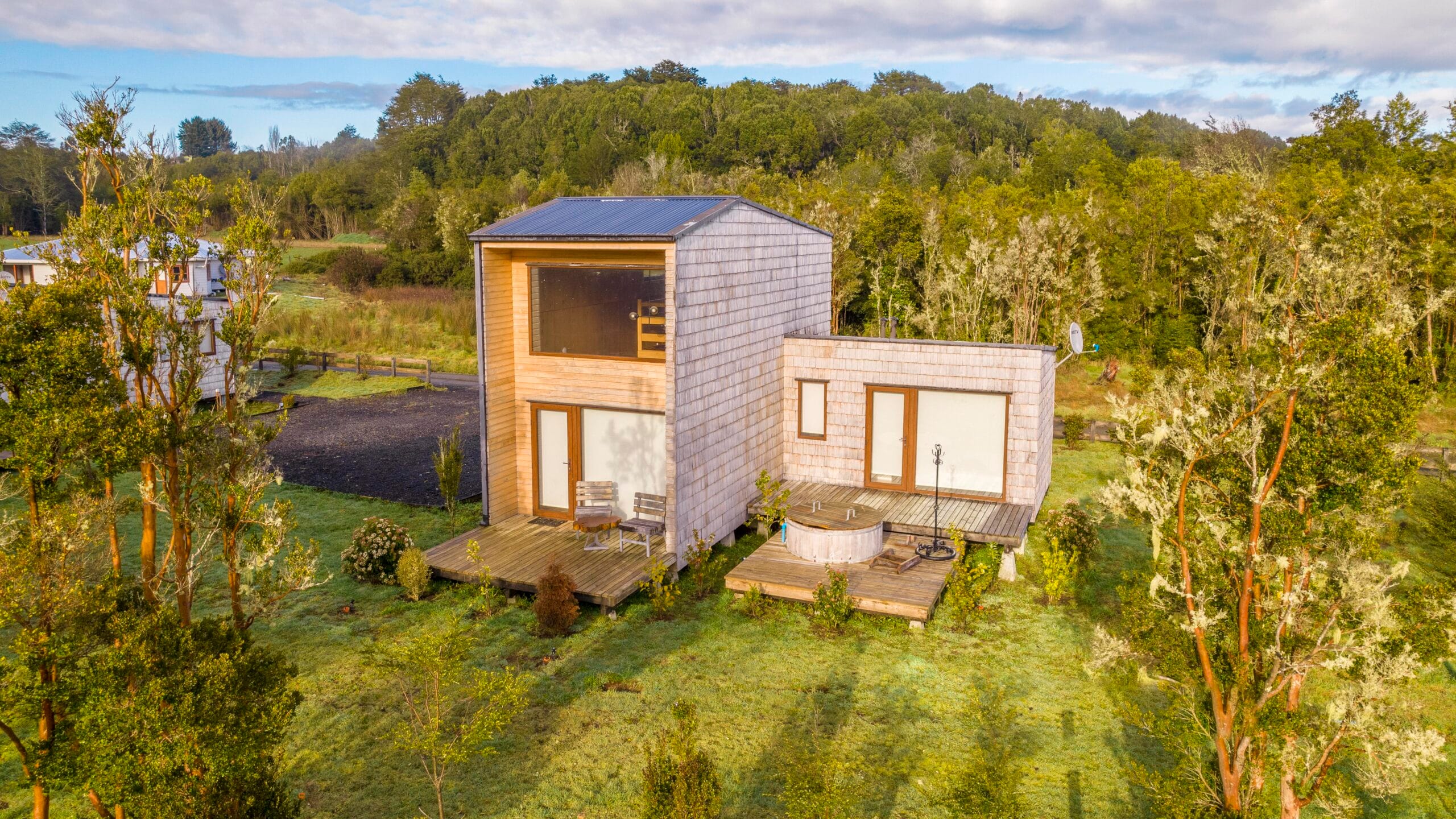 Construidas con maderas nativas por maestros locales, nuestras cabañas combinan la tradición chilota con la comodidad moderna. Somos un espacio pet-friendly, rodeado de bosque nativo y a pasos del Lago Huillinco, el Muelle de las Almas y el Parque Nacional Chiloé.
